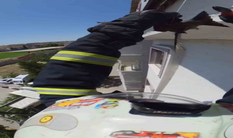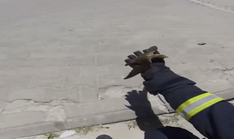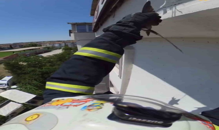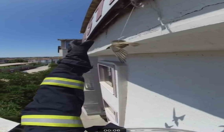 Kırklareli’nde çatının kenarında ipte asılı kalan ebabil kuşunu itfaiye ekipleri kurtardı.