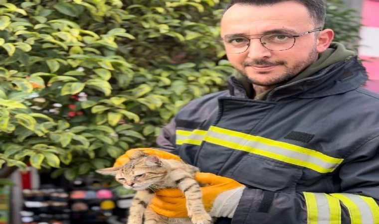 Çatıda mahsur kalan 3 yavru kediyi itfaiye kurtardı