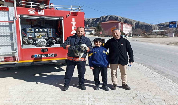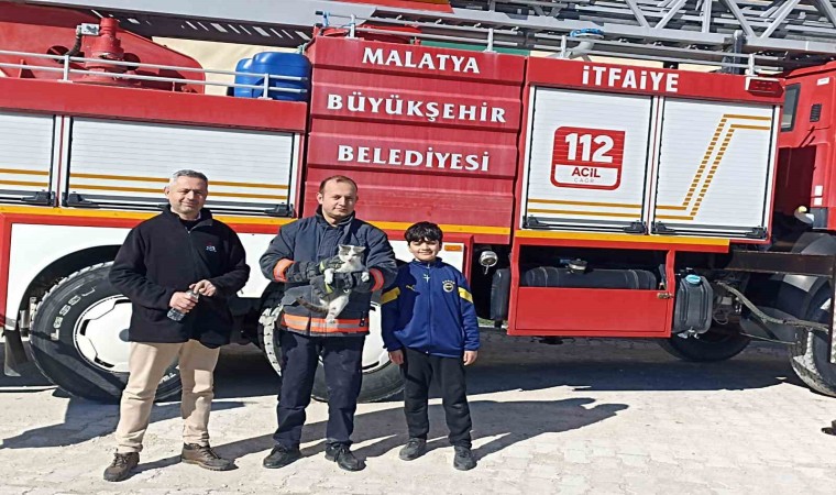 Darende ilçesi Heyiketeği Mahallesi’nde meydana gelen olayda, halı sahanın çatısına sıkışan kediyi gören ortaokul öğrencisi Mert Ali Dulek durumu itfaiye ekiplerine bildirdi. İhbar üzerine bölgeye itfaiye ekipleri sevk edilirken iki gün çatıda mahsur kaldığı değerlendirilen kedi kurtarıldı. Kedinin kurtarılmasını olay yerinde anbean takip eden ve büyük mutluluk yaşayan çocuk, ekiplere teşekkür etti.