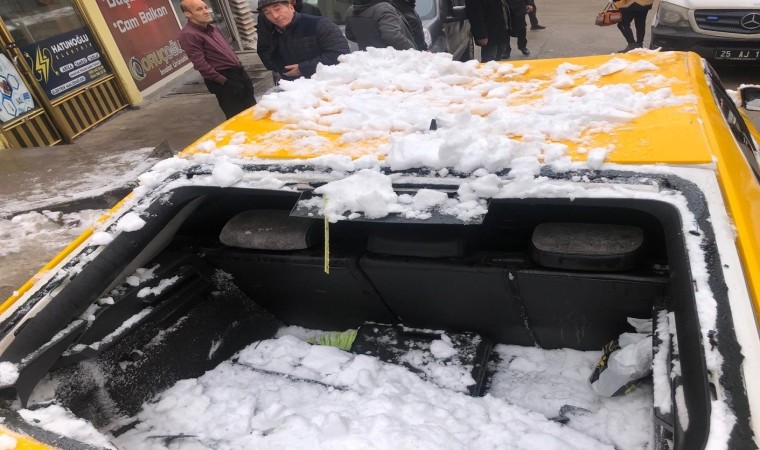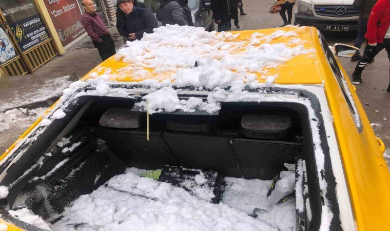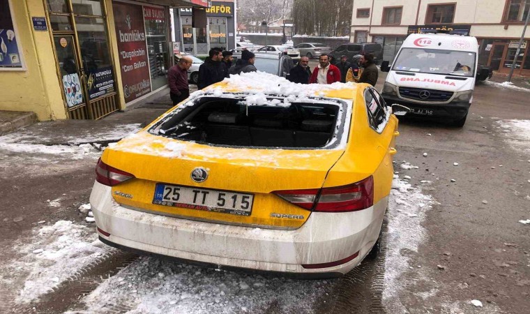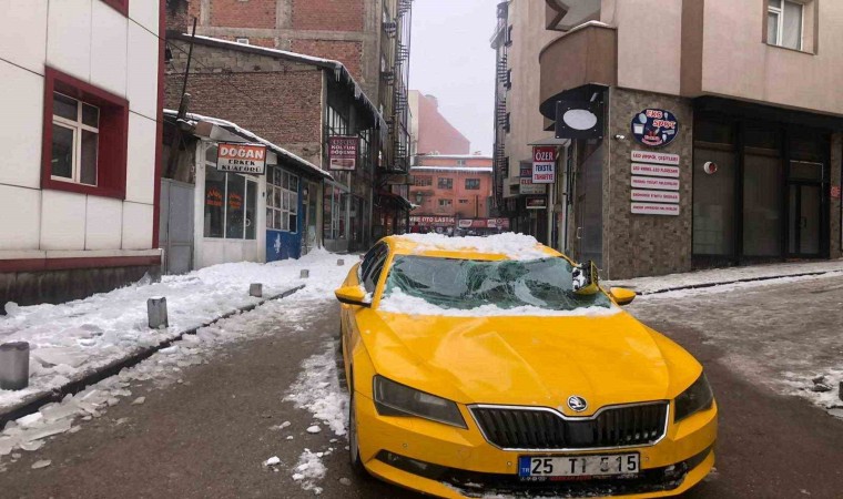 Erzurum’un Yakutiye ilçesinde Yoncalık ve Mumcu caddelerinde çatıdan düşen kar kütlesi iki otomobilde ağır hasara yol açtı. Kış mevsiminde çatıdan düşen buz sarkıtları yayalar için de büyük bir tehlike oluşturmaya devam ediyor.
