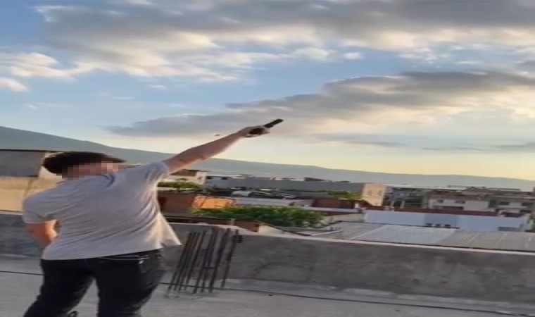 Bursa’da evinin çatısından tabanca ile havaya defalarca ateş açan şüpheli, o anları kaydettirip sosyal medya hesabında paylaştı. Görüntüler üzerine harekete geçen Yıldırım Suç Önleme ve Soruşturma Büro Amirliği ekipleri şüpheliyi çatı çatı kovalayarak yakaladı.