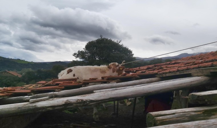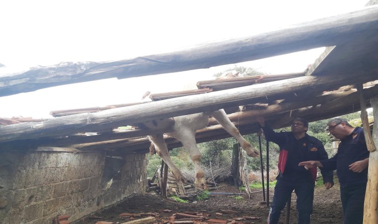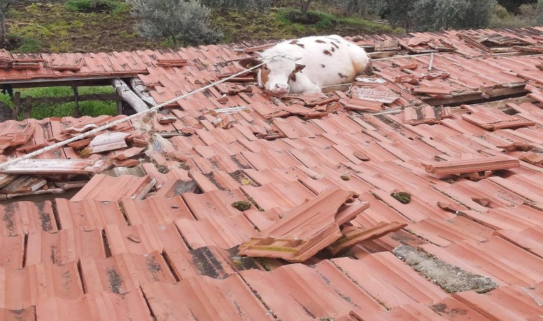 Olay, Salihli’nin Çelikli Mahallesi Keskinler mevkiinde meydana geldi. Edinilen bilgiye göre, otlayan inek farkında olmadan yerle aynı seviyede olan çatıya çıktı. İneğin ağırlığına dayanamayan çatı çökünce, inek asılı kaldı. Çevredekiler, çatıda mahsur kalan ineği kurtaramayınca, itfaiyeden yardım istedi. İhbar üzerine olay yerine gelen Manisa Büyükşehir İtfaiye Dairesi Salihli Amirliği ekipleri, mahsur kalan ineği çatıdan kurtardı.