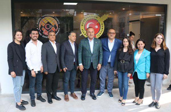 Konuşmaların ardından Bakan Çavuşoğlu gazetecilerle hatıra fotoğrafı çektirdi. (DHA)