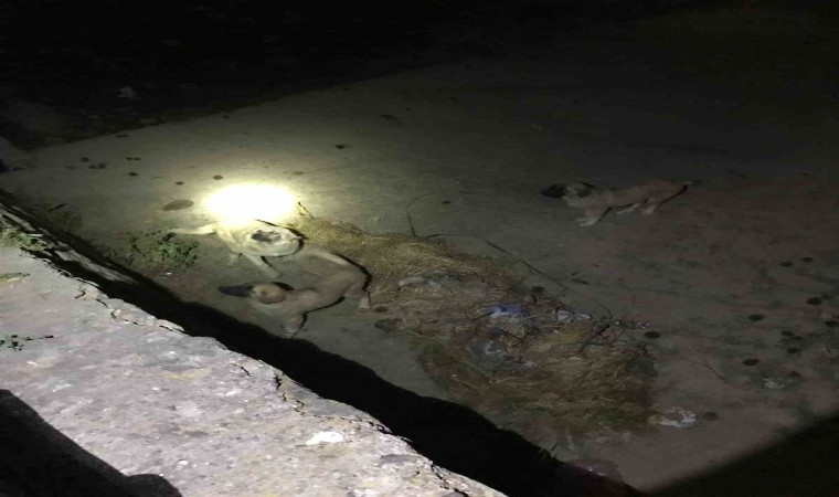 Afyonkarahisar’da 3 sokak köpeği düştükleri kurumuş çayda itfaiye ekipleri tarafından kurtarıldı.