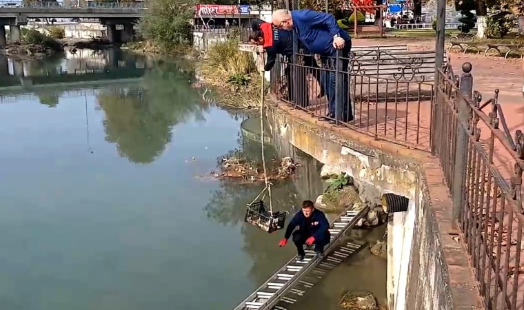 Zonguldak’ın Alaplı ilçesinde düştüğü çayda mahsur kalan kediyi itfaiye ekipleri kurtardı.