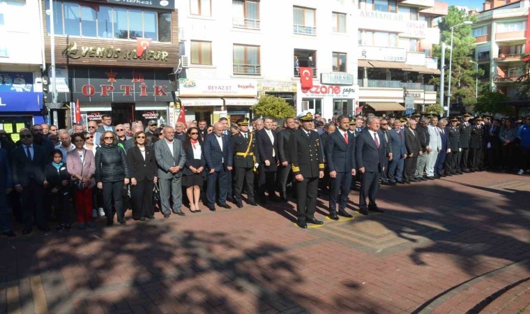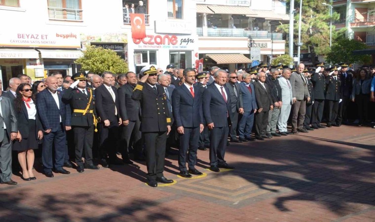 Çelenk sunma törenine; İlçe Kaymakamı Adem Kaya, Belediye Başkanı Bülent Kantarcı, Deniz Kuvvetleri Garnizon Komutanı Deniz Piyade Albay Fatih Ahmet Demirel, İlçe Emniyet Müdürü Uğur Duman, İlçe Jandarma Komutanı Binbaşı Samet Tonga, Cumhuriyet Savcısı Muhammet Burak Altan, İlçe Milli Eğitim Müdürü Ayhan Alagöz, AK Parti İlçe Başkanı Birol Yiğit, CHP İlçe Başkanı Fahri Diler, MHP İlçe Başkanı Mustafa Kaplan, Saadet Partisi İlçe Başkanı Engin Zeren, siyasi partilerin yönetim kurulu üyeleri, Sivil Toplum Kuruluşlarının temsilcileri, daire müdürleri, askeri erkan, öğretmenler, öğrenciler ile kalabalık vatandaş topluluğu katıldı.