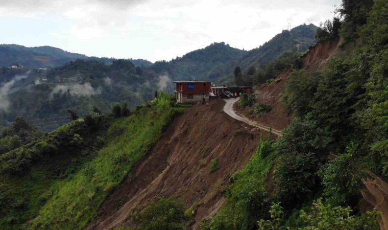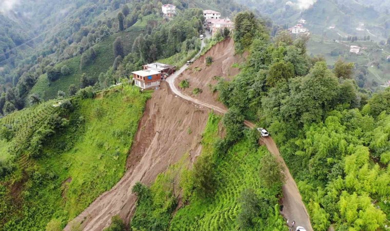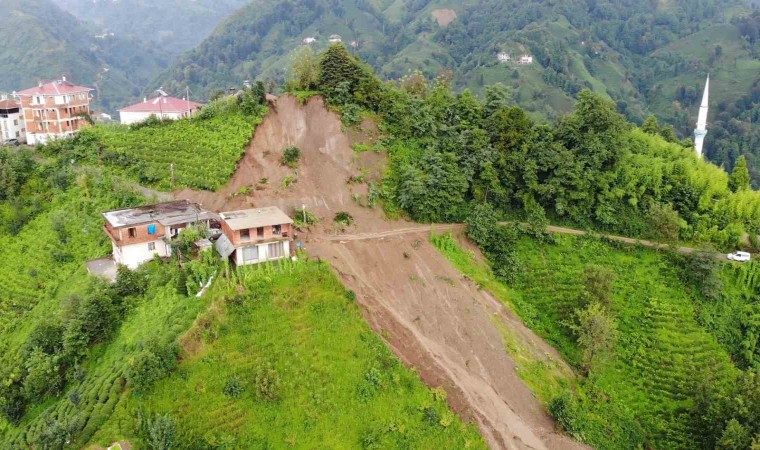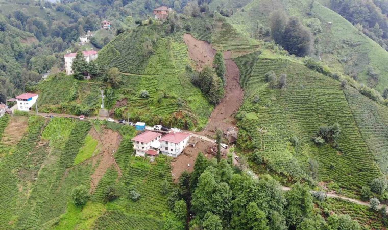 Rize’nin Çayeli ilçesinde 11 evin boşaltılmasına neden olan heyelan havadan görüntülendi.