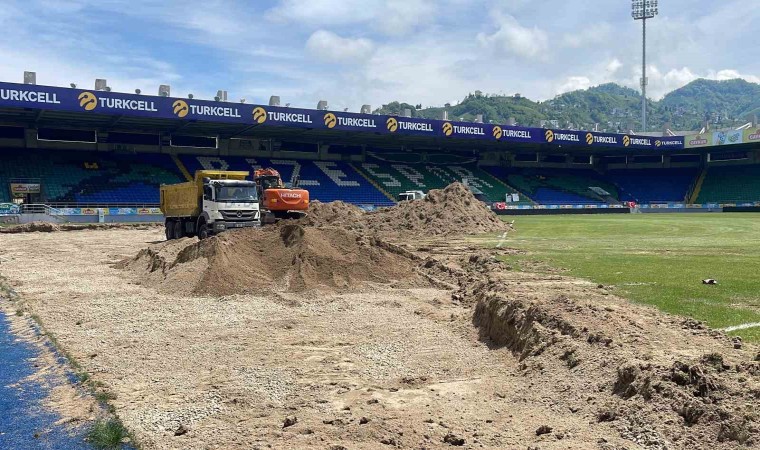 Birçok kez gündeme gelen Çaykur Rizespor’un stadının zemini yenilenmeye başlandı.