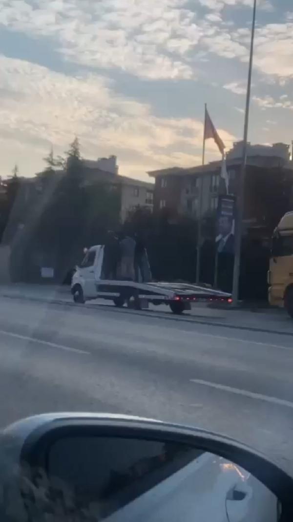 Çekmeköy'de çekici üzerinde tehlikeli yolculuk
