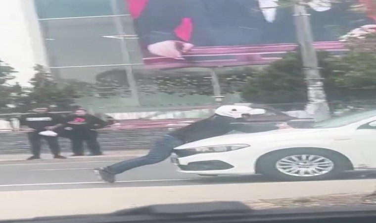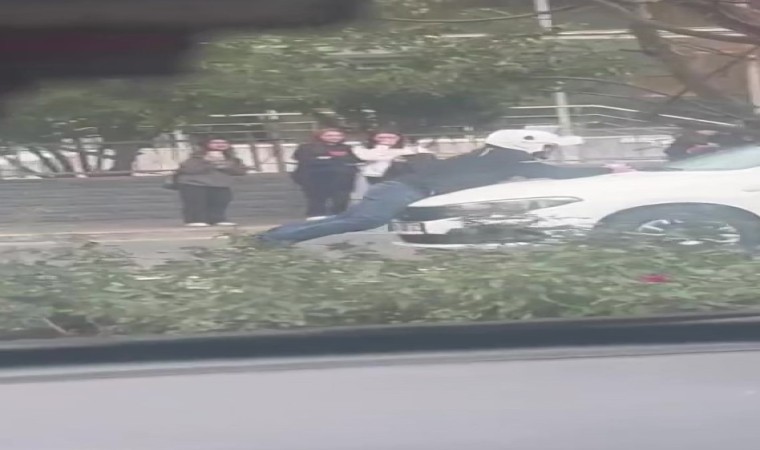 Çekmeköy’de bugün yaşanan olayda iddiaya göre bir motosiklet sürücüsü ile otomobil sürücüsü trafikte tartışma yaşadı. Tartışmanın ardından aracına binip gitmek isteyen otomobil sürücüsünü durdurmak isteyen motosikletli, otomobilin kaputuna yatarak gidişine engel olmaya çalıştı. Kaputa çıkan motosikletliyi inmesi için ikna edemeyen otomobil sürücüsü ise gaza basarak bir süre yolda ilerledi. Motosiklet sürücüsünün otomobil kaputuna yatarak ilerlemesi ise ilginç anlara sahne oldu. O anlar başka bir sürücü tarafında cep telefonu kamerası ile kaydedildi.