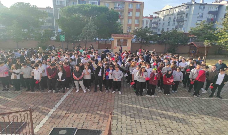 Burhaniye Celal Toraman Anadolu Lisesi öğrencileri, Cumhuriyet Bayramını okul bahçesinde kutladı.