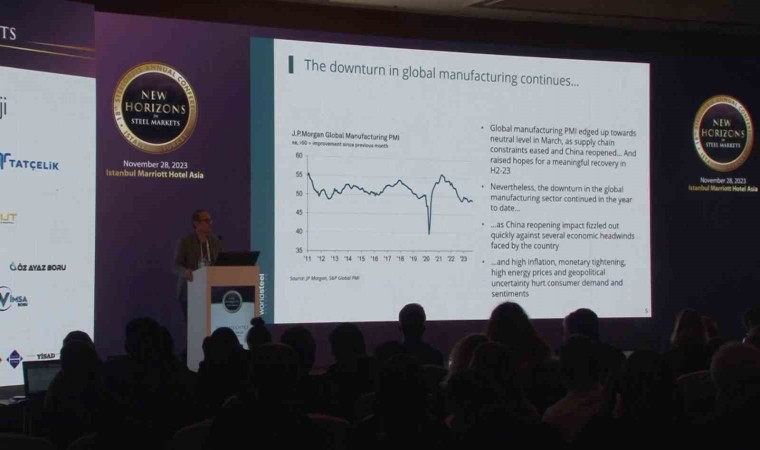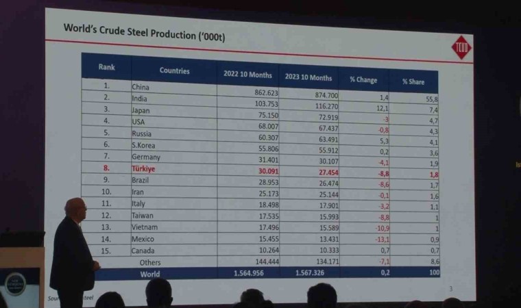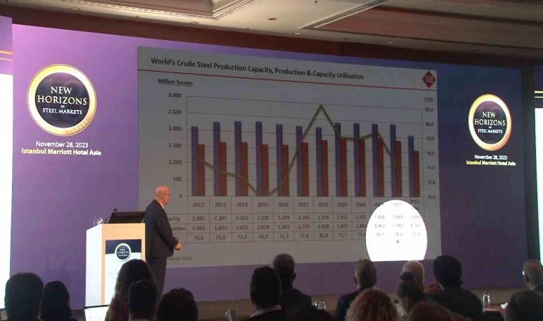 Türkiye’de her yıl geleneksel olarak gerçekleştirilen ve firmaların gelişimine katkıda bulunan konferansta Türk çelik sektörünün değerlendirme konuşmasını Türkiye Çelik Üreticileri Derneği Genel Sekreteri Dr. Veysel Yayan yaptı. Yayan, geçtiğimiz 2 yıl içerisinde dünya çelik sektörünün gerilediğini ve bu gerilemenin kaynağının kendi büyümesinde de yavaşlama görülen Çin olduğunu ifade etti. Yayan, Türkiye’nin ham çelik üretiminin ise ilk 10 ay itibarıyla yüzde 8,8 gerilediğini, bahsedilen gerileme geçen yılın aynı dönemine kıyasla daha hafif olsa da bunun baz etkisinden kaynaklandığını ifade etti. Türkiye’nin dünya ham çelik üretiminde 2022 yılını sekizinci sırada kapattığını ve bu yılın ilk 10 ayında Almanya’nın ardından yine sekizinci sırada yer aldığını söyleyen Yayan, kapasite kullanım oranlarının aynı dönemde yüzde 55 seviyesine gerileyerek 2014-2015 yıllarında görülen duruma benzer bir durumun ortaya çıktığını ifade etti.