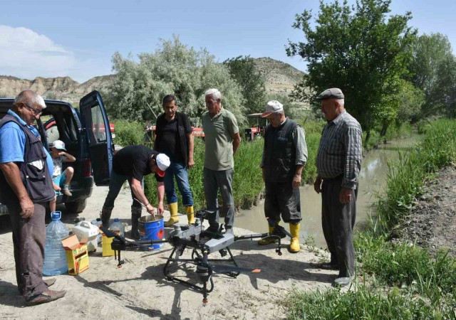 Çeltik tarlaları ZİHA ile ilaçlandı, çiftçiler merakla izledi