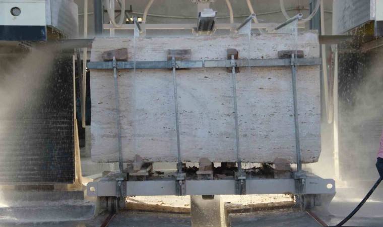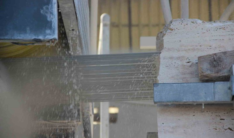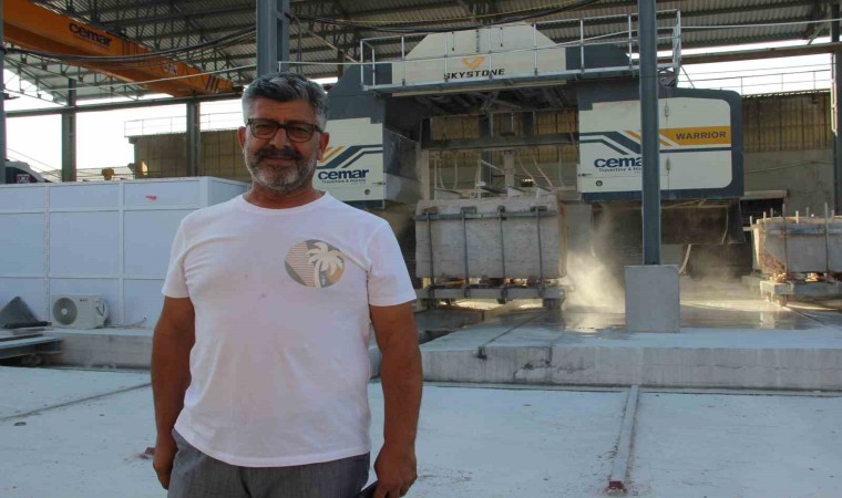 Üretim kapasitesinin arttığını, firma olarak sürekli yenilikleri takip ettiklerini ve uyguladıklarını anlatan Yalçın, “Bloklar bu makineye girdiği zaman plakalar halinde kesiliyor. Kesildikten sonra fabrikaya giriyor ve çeşitli ebatlarda seri üretim ışığında bir ebatlama yapılıyor ve kasalanarak ihracata hazır hale geliyor. Bu katrakların özelliği şu; hızı ve teknolojisi. Bunlar elmas tellerle kestiği için hem hassas hem de hızlı bir şekilde kesim yapıyor. Bu cihazlar sürekli yenileniyor biz de bu yeniliğe ayak uyduruyoruz. Üretim kapasitemizi yaklaşık 3 buçuk kat artırmış oluyoruz. Eski makineler 7 buçuk-8 saat bandında kesim yaparken yeni makineler 2 saat, 2 saat 10 dakika, 2.5 saat arasında kesim yapıyor. Dolayısıyla üretim kapasitemizi 3 buçuk kat artırmış oluyoruz” diye konuştu.