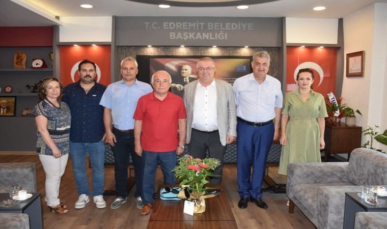 Edremit Belediye Başkanı Mehmet Ertaş, 25. Dönem Türkiye Büyük Millet Meclisi (TBMM) Başkanı Cemil Çiçek’i makamında ağırladı. Karşılıklı görüş alışverişinde bulunan Çiçek ve Ertaş görüşmenin sonunda hatıra fotoğrafı çektirdi. Edremit Belediye Başkanı Mehmet Ertaş “25. Dönem TBMM Başkanı Cemil Çiçek’e nazik ziyareti dolayısıyla teşekkür ediyorum.”dedi.