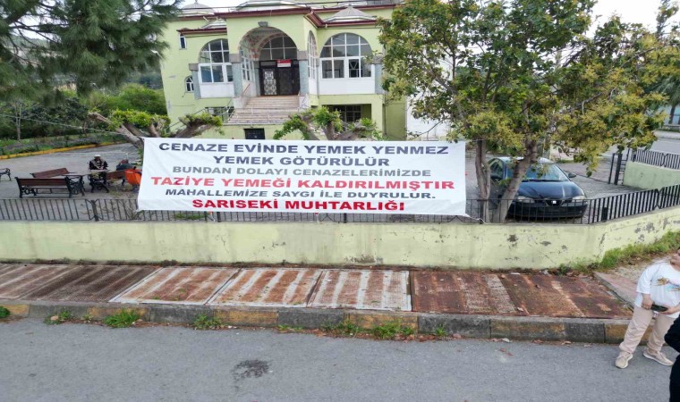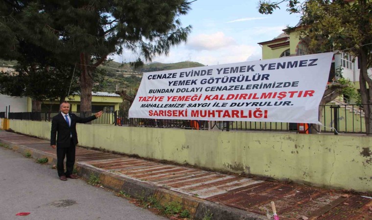 Hatay’ın İskenderun ilçesinde muhtar Özcan Kaya, ‘Cenaze evinde yemek yenmez, yemek götürülür’ diyerek mahallenin her yerini cenaze yemeğinin kaldırıldığını içeren afişlerle donattı.