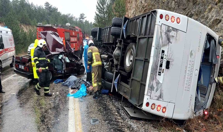 Otobüsteki 11 yolcudan, A.Ö. (58) hayatını kaybederken, İ.Ç. (59) ağır yaralandı. Hurda yığınına dönen otomobildeki sürücü K.S. (28) ağır yaralanırken, Y.A. (27) yaralandı. Olay yerine gelen 112 Acil Servis ekipleri, yaralıları Çekirge Devlet Hastanesine kaldırdı.