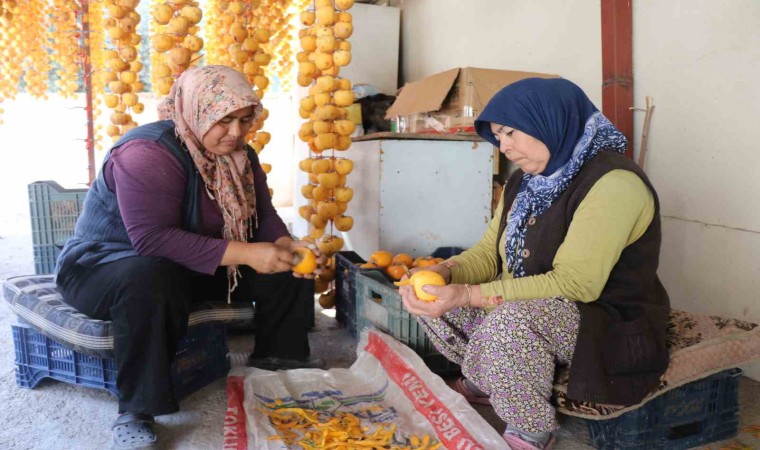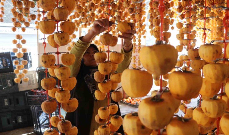 Denizli’nin Honaz ilçesinde 12 bin dekar araziden yaş ve kuru olarak üretilen Cennet hurmasının hasadında sona yaklaşıldı. Kabuklarının soyulmasının ardından tek tek asılarak kurutulan cennet hurmalarında verimin geçen yıla oranla yüzde 40 arttığı belirtildi.