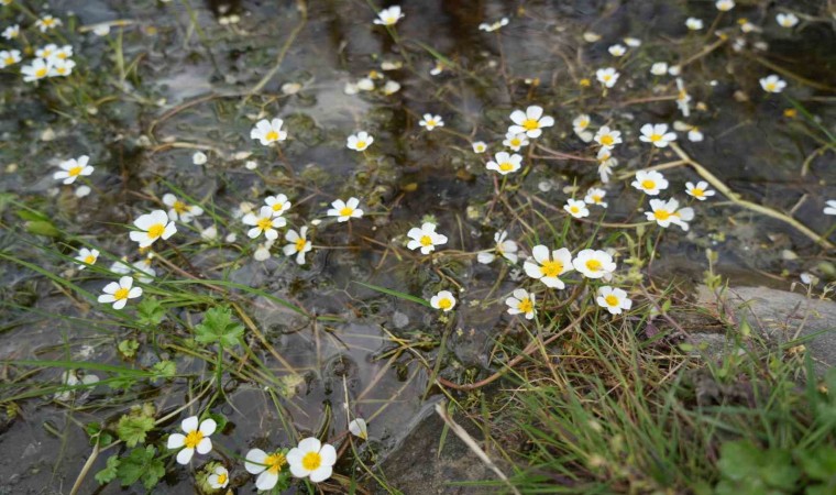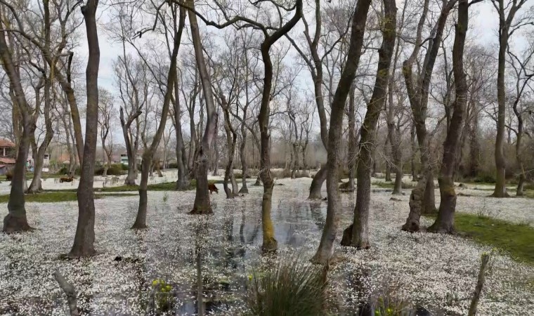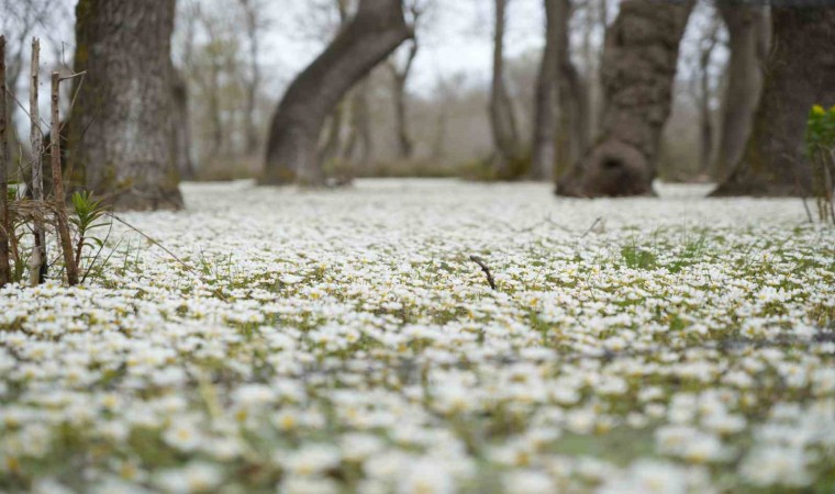 Türkiye’nin en önemli sulak alanlarından biri olan Kızılırmak Deltası Kuş Cenneti’nde açan su papatyaları, ziyaretçilerine eşsiz bir manzara sunuyor.