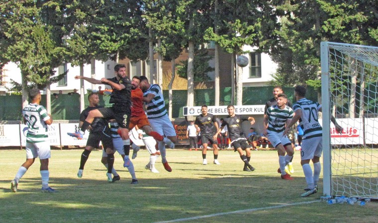 Yoğun bir kamp döneminin ardından yeni sezonun ilk maçına çıkan Çeşme Belediyespor, aradığı golü 39. dakikada Serkan Bozkurt’un ayağından buldu. Maçın ilk yarısı Çeşme Belediyespor’un 1-0’lık galibiyeti ile sonuçlandı.