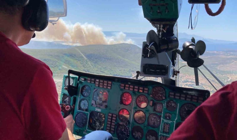 İzmir’in Çeşme ilçesindeki orman yangınına havadan ve karadan müdahale ediliyor.