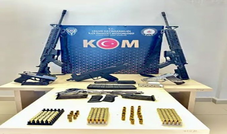 İzmir’in Çeşme, Buca ve Torbalı ilçelerinde düzenlenen eş zamanlı operasyonlarda çok sayıda silah ve mühimmat ele geçirilirken, 7 kişi tutuklandı.