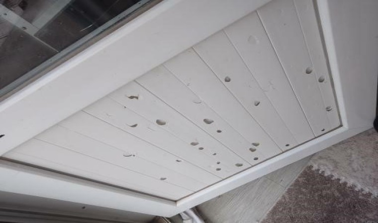 İlçe merkezindeki bir evin plastik kapısı da dolu yağışında delik deşik oldu.