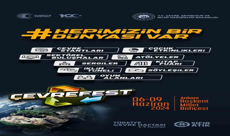 Çevre Haftası etkinlikleri arasında yer alan ve çevre ile iklim duyarlılığını artırmayı amaçlayan ÇEVREFEST; 5-9 Haziran tarihlerinde "Hepimizin Bir Dünyası Var" temasıyla Ankara’da düzenlenecek.