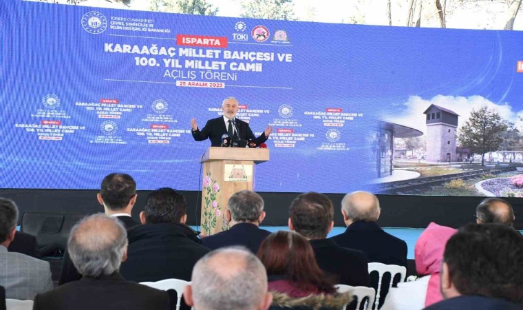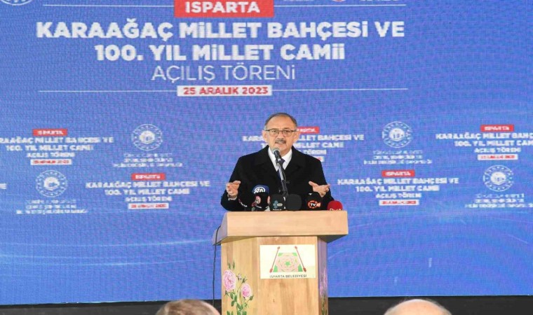 Çeşitli temaslar ve ziyaretlerde bulunmak üzere Isparta’ya gelen Çevre, Şehircilik ve İklim Değişikliği Bakanı Mehmet Özhaseki, Karaağaç Mahallesi’nde Millet Bahçesi ve 100’ncü Yıl Millet Camii’nin açılışına katıldı. Törende yaptığı konuşmada güller diyarında olduklarını ve gülün Hazreti Peygamber’in simgesi olduğunu belirten Bakan Özhaseki, millet bahçesinin ve caminin Isparta’ya hayırlı olmasını diledi. Bakan Özhaseki, devam eden 4 millet bahçesini daha Isparta’ya kazandıracaklarını belirterek, “Cumhurbaşkanı Recep Tayyip Erdoğan’ın talimatıyla 100 milyon metrekare yeşil alan ve millet bahçesi yapılması için zamanında bakanlığımızda proje başlattık. Şu anda 213’ü tamamlandı, 280’den fazlası da devam ediyor. Yeşile bu kadar önem vermemizin sebebi dünyanın yemyeşil olması, dengenin korunması, biraz da kirliliği gideren en önemli unsur olduğu için, inancımız gereği olduğu için önem veriyoruz. Değerli dostlar yaklaşık 200 yıldır dünyadaki sistem biraz değişmeye başladı. Özellikle sanayi devrimiyle birlikte dışarı salınan karbon diye tabir ettiğimiz veya başka türlü atmosferi kirleten gazlar dünyanın başına bela olmaya başladı. Dünyanın ortalama ısısı 1.1 derece arttı. Eğer 2 dereceye çıkarsa bu ısı artışı gıda krizleri başlıyor. Gıda krizlerinin başladığı yerde kavga başlar, savaş başlar, insanlar göç etmeye başlar” dedi.