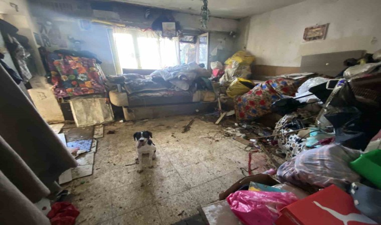 Çevreye kötü koku yayılan evden 2 kamyon çöp ile 4 köpek çıktı