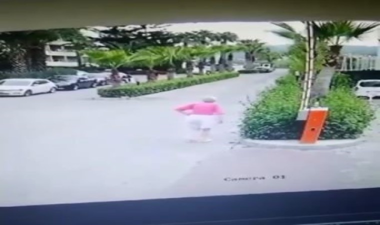 Öte yandan kadının yolda yürüdüğü anlar bir iş yerinin güvenlik kamerasına yansıdı.
