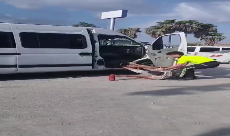 Adana’da eksik evrakı olduğu için trafik polisinin cezai işlem uyguladığı servis aracı sürücüsü, aracını ve kendini yakmaya çalışıp polise direndi.