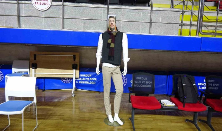 Burdur’da Basketbol Antrenörü Mevlüt Gezer, maça çıkmama cezası alınca oyuncularına moral olsun diye kendi maketini saha kenarına koydu. Maketin saha kenarında durmasına izin verilmeyince bu sefer tribünden destekledi. Antrenörün bu hareketi taraftardan ilgi görürken, görenleri gülümsetti.