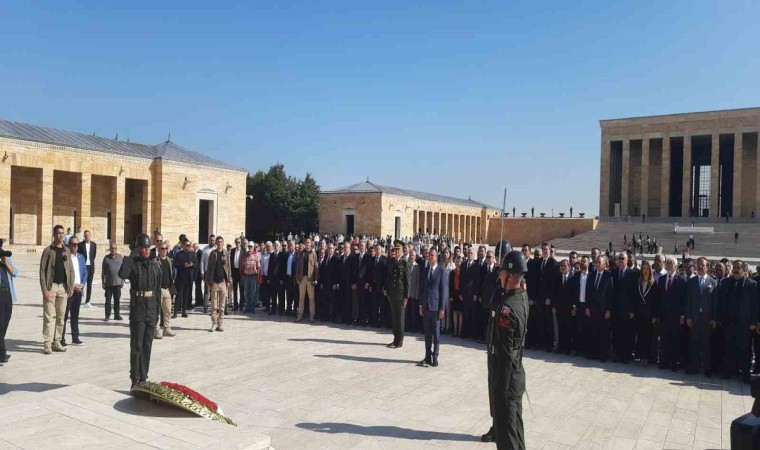 Özel başkanlığındaki heyet, Aslanlı Yol’dan ilerleyerek Cumhuriyet’in kurucusu Gazi Mustafa Kemal Atatürk’ün mozolesine geldi. Özel’in kırmızı ve beyaz karanfillerden oluşan çelengi mozoleye bırakmasının ardından saygı duruşunda bulunuldu.