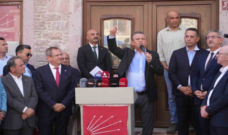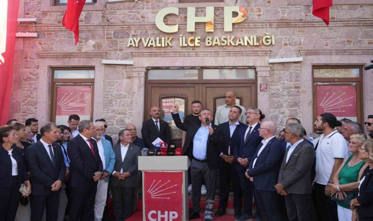 Ayvalık ilçe teşkilatını baba evi olarak değerlendiren Özgür Özel, "Buranın tapusu hiçbirimizin üzerinde değildir. Ne bende, ne Kemal Bey’de, ne rahmetli Ecevit’te, ne İnönü’de. Baba evinin tapusu bir kişiye kayıtlıdır, o da Gazi Mustafa Kemal Atatürk’tür” dedi.