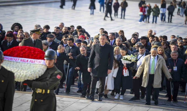 CHP Genel Başkanı Özel ile engellilerden oluşan beraberindeki heyet, Atatürk’ün mozolesine geldi. Mozoleye çelengin bırakılmasının ardından saygı duruşunda bulunuldu.