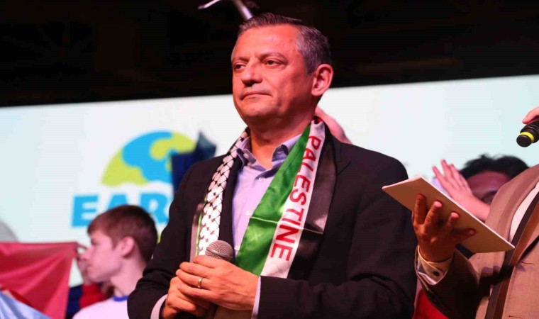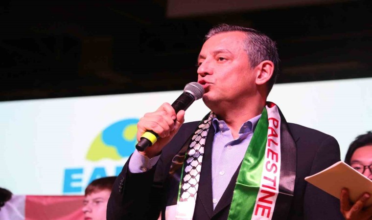 Filistin bayrağı renklerini temsil eden fularla sahneye çıkan CHP Genel Başkanı Özgür Özel, "Bugün burada 90 ülkeden 564 katılımcıdan 3 bin 400 kişiyi ağırlamak ve bin 400 yarışmacı ile birlikte olmak mutlulukların en büyüğü. Bu güzel temayla sizleri İzmir’de ağırlamak çok önemli. Gezdiğim bütün çalışmalarda doğal afetlerde insanlara yardım edecek ve doğayı korumak için olan projeleri çok dikkatle takip ettim ve mutlulukla inceledim. Bu şehirde 4 yıl önce yaşanan depremde 117 kişi öldü. 2 yıl önce büyük depremde 50 binin üzerinde vatandaşımızı kaybettik. Doğal afetlere ve depremlere enkazdan yaralı kurtarmaya ve doğaya dostu çok sayıda robotik projeyi görmek ümit vericiydi. Türkiye’nin en batısındaki ilden tüm dünyaya seslenmek isteriz ki çocuklar yaşatmak için çalışmalı ve birbiri ile yarışmamalıdır. Çocuklar asla savaşta eğitimden ve beslenmeden, ailelerinden yoksun kalmamalılar. Dünyanın dört bir yanındaki çatışmaların bitmesini, Ukrayna’daki Filistin’deki çocukların ölmemesini Filistin’deki katliamın ve Ukrayna’daki savaşın durmasını ümit ediyorum. Ülkemizin kurucu Gazi Mustafa Kemal Atatürk’ün bir sözünü söyleyerek sözlerimi bitirmek istiyorum ‘Yurtta barış cihanda barış’” ifadelerine yer verdi.