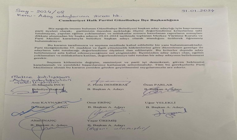 CHP İzmir’de, 31 Mart 2024 yerel seçimleri için adayların belirlenmesinin ardından, Güzelbahçe ilçesinde mevcut Başkan Mustafa İnce’nin yerine Mustafa Günay aday gösterildi. Aday gösterilmeyen Mustafa İnce, duruma tepki olarak diğer aday adayları ile birlikte CHP Güzelbahçe İlçe Başkanlığında basın açıklaması yaptı.