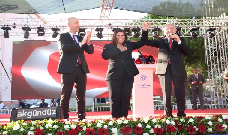 Özlem Çerçioğlu’nu "Bir belediye başkanı kendisini kentine adamışsa, kentin insanına yaşı ve yaşadığı yer ne olursa olsun hizmet edebiliyorsa o kentte güzellik vardır" ifadeleri ile öven CHP Genel Başkanı Kemal Kılıçdaroğlu, “Özlem Başkan, halkın sorunlarını çözüyor. Aydın Büyükşehir Belediye Başkanımız gerçekten de sadece Aydın için değil, Türkiye için de örnek belediye başkanlarımızdan biridir. Örneğin birinci yönü kadın bir belediye başkanı, ikincisi ise Aydın’a yaptığı yatırım ve hizmetler. Aydın’a yaptığı yatırımları sanmayın ki sadece Aydınlılar biliyor, bütün Türkiye biliyor. Dolayısıyla önümüzdeki süreçte de Özlem Başkanımız, Aydın Büyükşehir Belediye Başkanı olarak görevine devam edecek” diyerek kürsüye çağırdığı Aydın Büyükşehir Belediye Başkanı Özlem Çerçioğlu’nun elini kaldırarak 2024 yerel seçimleri için Aydın Büyükşehir adayını açıkladı.
