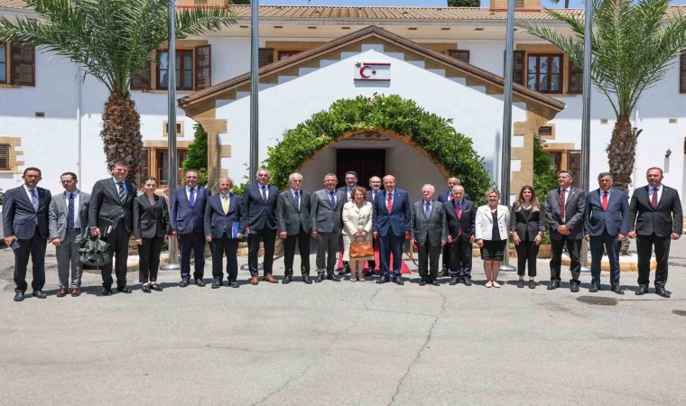 Özel, “Elbette barış ve çözümü savunuyoruz. Bugün Kıbrıs Türklerinin elbette sorunları var. Sporcularımızın sorunları var. Ticaret hayatı içinde olanların sorunları var. Üniversitelerimiz sorunlar yaşıyor. Bu zorlukların hepsinin aşılması için en güçlü şekilde Kıbrıs’ın, Kuzey Kıbrıs Türk Cumhuriyeti’nin arkasında durma zaruretimiz var. Sizin ortaya koyduğunuz doğrudan ticaret ve doğrudan uçuş, bunların sağlanması son derece önemli. Bugün Kıbrıs’ta kiminle temas etsek, belki farklı çözüm önerileri de olsa bir ortak noktada, yani eğer yeniden bir anlaşma olmayacaksa da mutlaka Kıbrıs’ın, Kuzey Kıbrıs Türk Cumhuriyeti’nin kazanımlarının teyit edildiği ve baştan söylendiği noktadan harekete geçilmesi gerektiğini, hem sizden hem daha önce ziyaret ettiğimiz, sabah görüştüğümüz Sayın Erhürman’dan da duyduk. Elbette Kıbrıs’ın iç politikasındaki farklı düşünceler, dış politikaya yönelik farklı düşünceler olabilir. Biz Kıbrıs’ı bir bütün olarak sahipleniyoruz. Dün TBMM’nin bütün dünyaya verdiği kuvvetli mesajın Kıbrıs’ta da iktidarı ve muhalefetiyle verilmesinin son derece önemli olduğunu düşünüyoruz. Bugün ayrılıkları değil birliktelikleri konuşmanın, fikir ayrılıklarını değil KKTC ve Türkiye’nin ortak menfaatleri için birlikte olabilmenin zamanıdır. Bunun için buradayız ve hep birlikteyiz” ifadelerini kullandı.