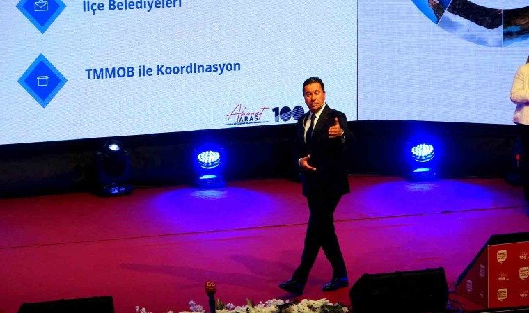 Aras, yaklaşık 180 projesini teker teker anlatmadan önce, "Biz Muğlalı olarak çiftçisinden, işçisine, memurundan, gencine tüm yurttaşlarımız ile birlikte baskıya karşı özgürlüğü geleceğe karşı Cumhuriyeti aydınlatmayı ve eşitliği savunacağız. Hepimize şu şekilde insanca yaşayacağız” dedi.