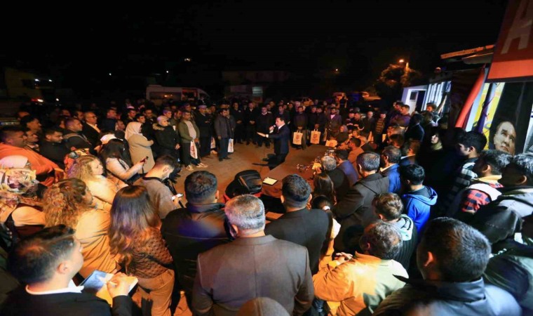 Bölgenin su ihtiyacını çözmek için çalışacağını belirten Aras, “Ama belediyecilikte ne yapacağız? Bizim asıl işimiz belediyecilik. Muhtarım dedi ki su. Belediyenin asli görevi. Suyu getirmek lazım buraya. MUSKİ’ye buraya gelmeden önce sordum. Ne yaptınız siz Karadere’ye? Dediler ki, ‘Başkanım orada yer altı suyu kullanamıyoruz. Her yer sera. Tarımsal ilaçlama var. Yer altı suları tehlikeli. Halkımıza bu suyu kullandıramıyoruz’ dediler. Ne yapacaksınız o zaman? Dediler ki Saklıkent’ten bir proje vardı onu yapacağız. Ne zaman yapacaksın? Arkadaşlar izni almış, 500lt/sn suyu tahsis ettirmiş MUSKİ’ye şimdiye kadar ki yönetim. Bugün yarın proje ihaleye çıkıyormuş. İhaleye çıkıyor, 9 ay içerisinde projesi bitiyor. 9 ay sonra Allah izin verirse bir hafta sonra koltuğa oturduğumuzda hemen bu işin parasını bir kenara ayıracağız. Çünkü su yaşamsal haktır. İnsanın birinci hakkıdır. Bu proje bitince de buranın Boru Hattı’nın ihalesine çıkacağız. Yani bunları çözmek benim boynumun borcu” diye konuştu.