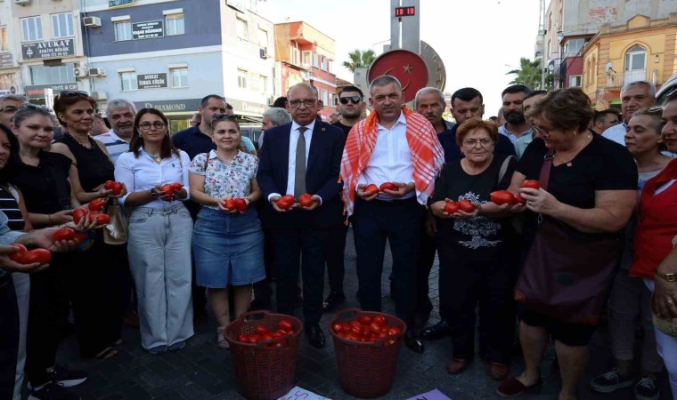Manisa’nın Turgutlu ilçesinde CHP Turgutlu İlçe Teşkilatı, domates üreticilerinin yaşadığı sorunları gündeme getirmek amacıyla bugün saat 18.00’de Koza Pazarı Parkı’nda bir basın açıklaması düzenledi. Basın açıklamasına Turgutlu Belediye Başkanı Çetin Akın, CHP Turgutlu İlçe Başkanı Hasan Ayma, meclis üyeleri ve vatandaşlar katılırken, domates üreticisinin ve çiftçilerin protestoya az sayıda katılımı dikkat çekti. Çiftçilerin son dönemde yaşadığı sıkıntıları dile getiren CHP Turgutlu İlçe Başkanı Hasan Ayma, yaptığı maliyet hesabıyla domates üreticisinin zarar ettiğini söyledi. Ayma, "Domates üreticisinin dönümde 20 bin lira zararı var. Hep üzülen çiftçi, traktörünü tarlasını satan çiftçimiz. Bugün araba, tank top üretebilirsiniz ama çiftçi olmazsa bunlar da olmayacak. Çiftçi yoksa Turgutlu yok, Manisa yok, Türkiye yok, ekonomi yok, hayat yok. Ancak şunu görüyoruz ki çiftçi kendine sahip çıkmazsa, çiftçi çiftçiye sahip çıkmazsa biz bunu ne kadar dile getirirsek getirelim sonuç alınmayacaktır. Bugün yaşanan üzümde de yaşanıyor. Lütfen kendinize sahip çıkın isyansa isyan ama sesinizi duyurmak zorundasınız. Bunu bizimle yapmak istiyorsanız biz buradayız. Cumartesi günü Tarım Bakanı burada aynı tepkiyi ona da gösterin" şeklinde konuştu.