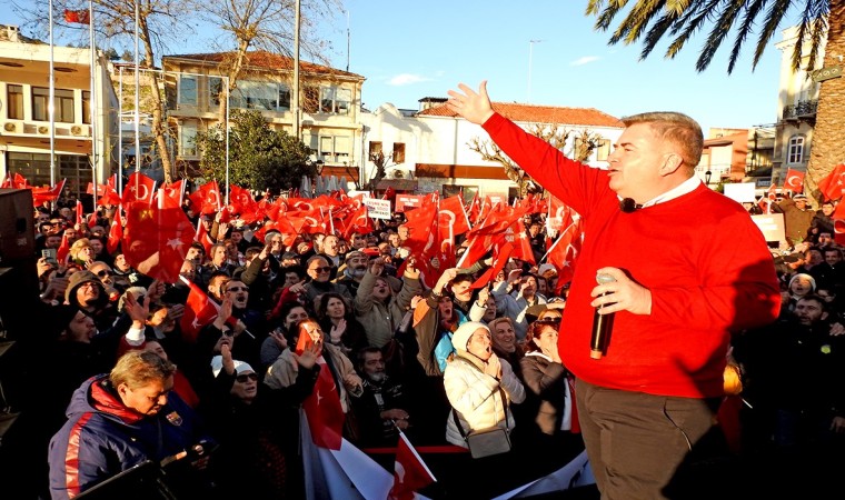 Belediye başkanlığına aday adaylığını koyan Çeşme Belediye Başkanı Ekrem Oran da, Lal Denizli’nin Çeşme’den aday gösterilmesine tepki gösterirken, binlerce Çeşmelinin katılımıyla Çeşme Cumhuriyet Meydanı’nda miting düzenledi. Mitingde ‘ithal aday istemiyoruz’ ve ‘Ankara şaşırma, sabrımızı taşırma’ sloganları atılırken Başkan Oran, Genel Merkeze karardan dönülmesi için çağrıda bulundu.