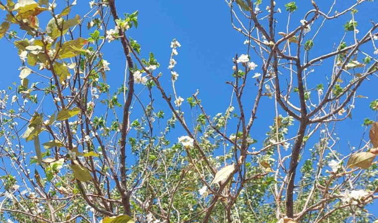 Manisa’nın Sarıgöl ilçesinde ilkbaharda çiçek açan ve meyve veren erik ağacı hava şartlarının değişmesi üzerine sonbaharda yeniden çiçek açtı. Akşamları soğuk gündüzleri mevsim normalinin üzerinde seyreden hava sıcaklığı üzüm bağı içinde bulunan ve ilkbahar ayında çiçek açan erik ağacına sonbaharda yalancı baharı yaşattı. Erik ağacının çiçek açtığını gören bağ sahipleri ise şaşkınlıklarını gizleyemedi.