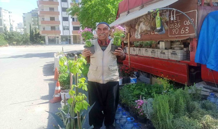 70 yaşındaki Bilal Demir, "55 yıldır çiftçiyim. Çiçekçilikle uğraşıyorum ve ömrümü bu şekilde iyi işlerle geçirmeye çalışıyorum. İnsanlara faydalı işler yapmaya çalışıyorum. Burada kendi ürettiğim çiçekleri, fideleri insanların ihtiyaçları için satıyorum. 14 çeşit kaktüsüm var. 100 çeşit meyve fidanım var. Mezarlıklara dikilecek 15-20 çeşit çiçeklerim var. Fidelerin hepsi soğuk ve sıcağa karşı dayanıklı ve doğal" diyor.