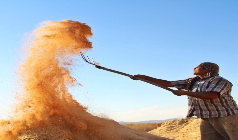 Hasat yaptıklarını söyleyen çiftçi Ali Bayram, “Burada patos makinası ile ürünümüzün hasadını yapıyoruz. Saman ve buğdayını ayırıp samanı satıp buğdayı da eve götürüyoruz. Buğdayı kazanlarda pişirdikten sonra kullanmak üzere stokluyoruz. Güneşin altında haliyle işimiz zor oluyor” dedi.