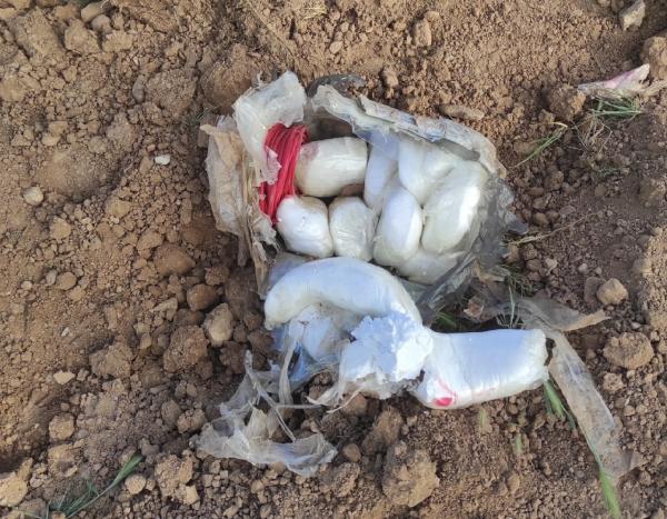 Çiftçinin sürdüğü tarlada, toprağa gömülü 2 bidonda 40 kilo patlayıcı bulundu