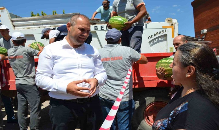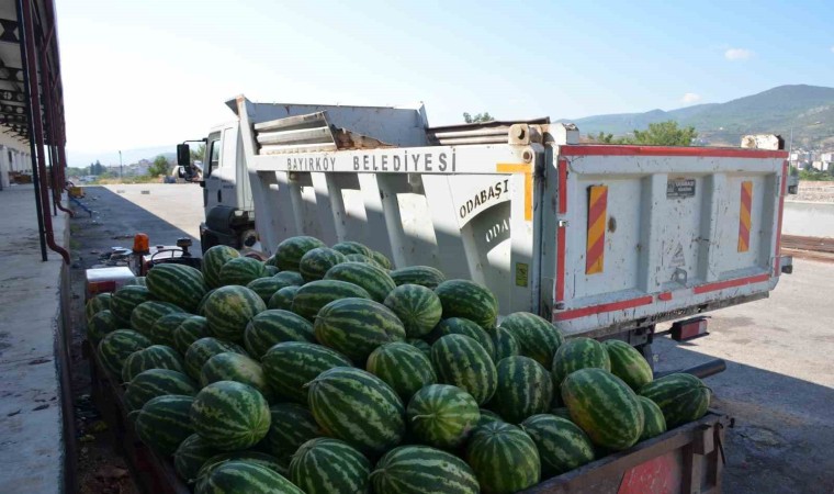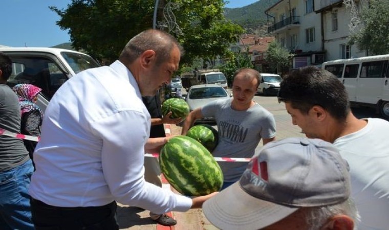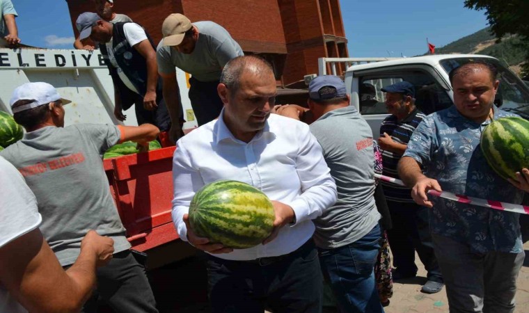 Bilecik’in Bayırköy Belde Belediye Başkanı Aykut Dilsiz, çiftçiye destek için vatandaşlara 2 ton ücretsiz karpuz dağıtımı gerçekleştirdi.