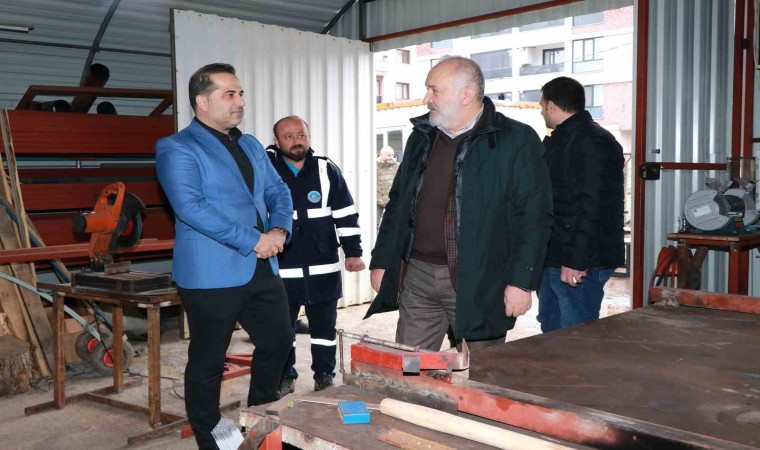 Çiftlikköy Belediyesi’nin kendi tesislerinde üretimini yaptıkları kent mobilyaları ile Çiftlikköy’ü donatacaklarını dile getiren Çiftlikköy Belediye Başkanı Ali Murat Silpagar, belediyenin kaynak atölyesini ziyaret ederek yapılan çalışmaları yerinde inceledi.